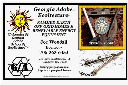 This is only part of how we design and build Georgia Adobe(TM), Earth sheltered, passive solar, passive ventilated "REAL" Rammed Earth Homes, (Read About How To Build With Rammed Earth In The List Of Pages HOW TO Topic Pages That, We Provide Here On This Website) that can basically heat and cool themselves, make their own water, power, gas sometimes, grow lots of food and are generally paid for, when built as we plan and consult to our clients, to build for themselves, upon the day one moves in. Call us to get started, before you need it!